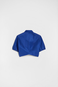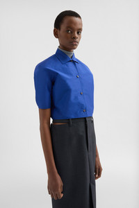 Cropped-fit short-sleeved technical faille shirt with soft draped waist Details - cropped and boxy shape - centre-front button closure - adjustable cuffs with single button - double face technical crepe - 100% polyester - made in Italy - StyleID: J03DL0237J70221427 Care - dry clean only - iron with care Fit - model is 177cm/5'9" and is wearing a size 40 IT - Please note that the physical label of the item will show the Italian size