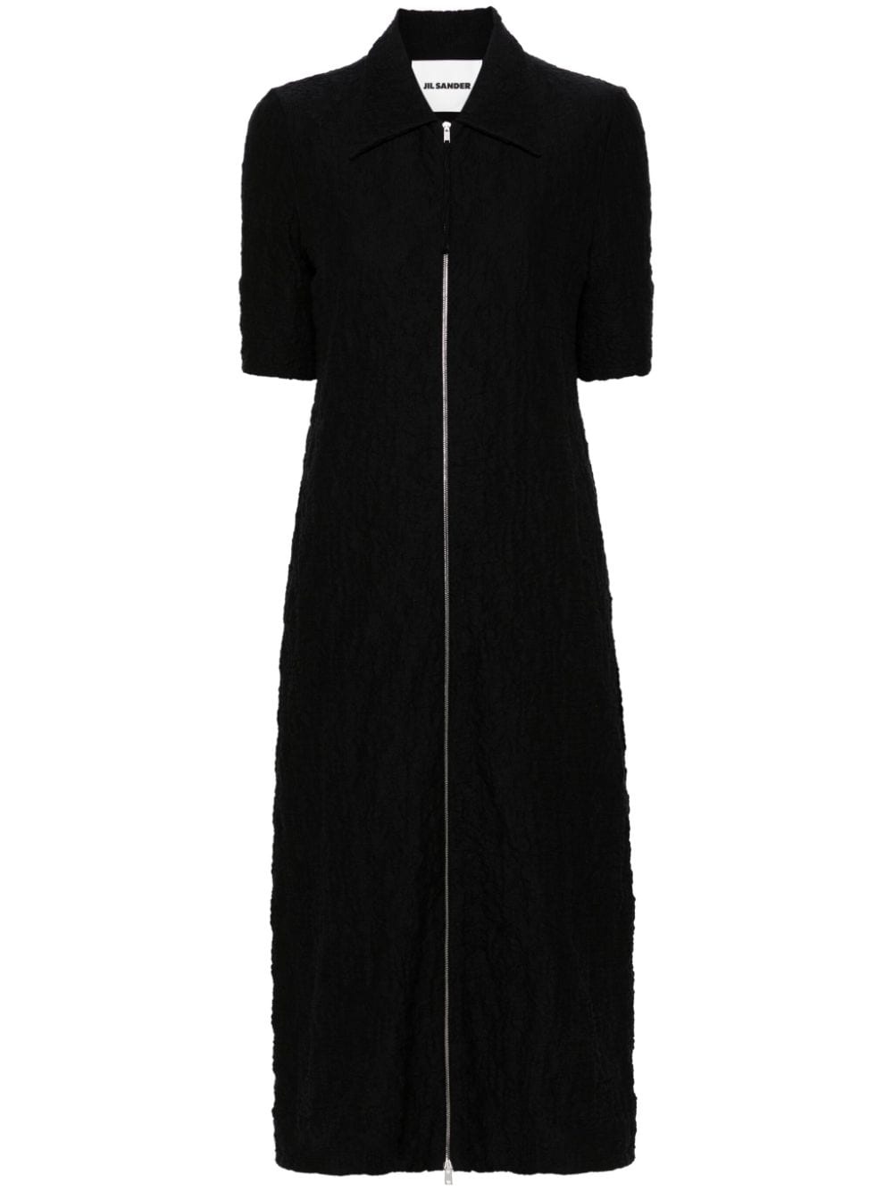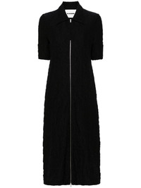 textured mid-length dress Highlights - Black - Cotton blend - Textured finish - Spread collar - Front two-way zip fastening - Short sleeves - Mid-length - Flared - Straight hem - Full lining Made in Italy Composition Outer: Cotton 80%, Polyamide 18%, Polyurethane 2% Lining: Viscose 100% SIZE & FIT Model measurements Height 5 ft 11 in(1.81 m) Bust/Chest 32.67 in(83 cm) Hips 35.43 in(90 cm) Waist 23.62 in(60 cm) FittingInformation Designed for a relaxed fit, this piece allows for comfort and movement when worn Made from a midweight non-stretch fabric This piece fits true to size – take your usual size