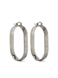 textured oval-hoop earrings Highlights - Silver-tone - Rectangular frame - Textured surface - Hook fastening - Herringbone pattern - These earrings come as a pair. Made in Italy SIZE & FIT Model measurements Height 5 ft 9 in(1.75 m) Bust/Chest 34.64 in(88 cm) Hips 36.61 in(93 cm) Waist 26.37 in(67 cm) Measurement HEIGHT 1.65 in(4.2 cm) Weight (single earring) 8 g(8 g) WIDTH 0.23 in(0.6 cm)