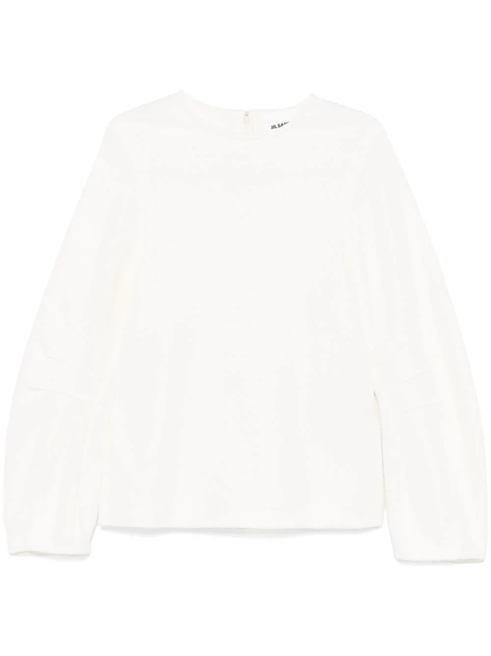 textured sweatshirt Highlights - White - Textured finish - Concealed rear hook and zip fastening - Round neck - Long sleeves - Raised seam detail - Side slits - Straight hem Made in Italy Composition Viscose 62%, Polyamide 37%, Elastane 1% SIZE & FIT Model measurements Height 5 ft 10 in(1.77 m) Bust/Chest 30.7 in(78 cm) Hips 35.03 in(89 cm) Waist 23.62 in(60 cm) FittingInformation Designed to be unstructured, offering a loose fit throughout Made from a midweight stretch fabric, this piece offers elasticity and flexibility when worn