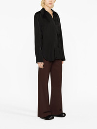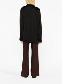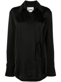 tie-fastening wrap shirt Jil Sander’s shirt is a laid-back take on classic tailoring. It’s crafted from black crepe to a wrap silhouette that secures with a delicate tie at the side. Highlights - Black - Crepe texture - Wrap design - Classic collar - Side tie fastening - Long sleeves - Buttoned cuffs - Straight hem Made in Italy Composition Viscose 100% SIZE & FIT Model measurements Height 5 ft 10 in(1.79 m) Bust/Chest 31.49 in(80 cm) Hips 35.03 in(89 cm) Waist 23.62 in(60 cm) FittingInformation Designed to be unstructured, offering a loose fit throughout Made from a midweight non-stretch fabric This piece fits true to size – take your usual size Washing instructions Dry Clean Only