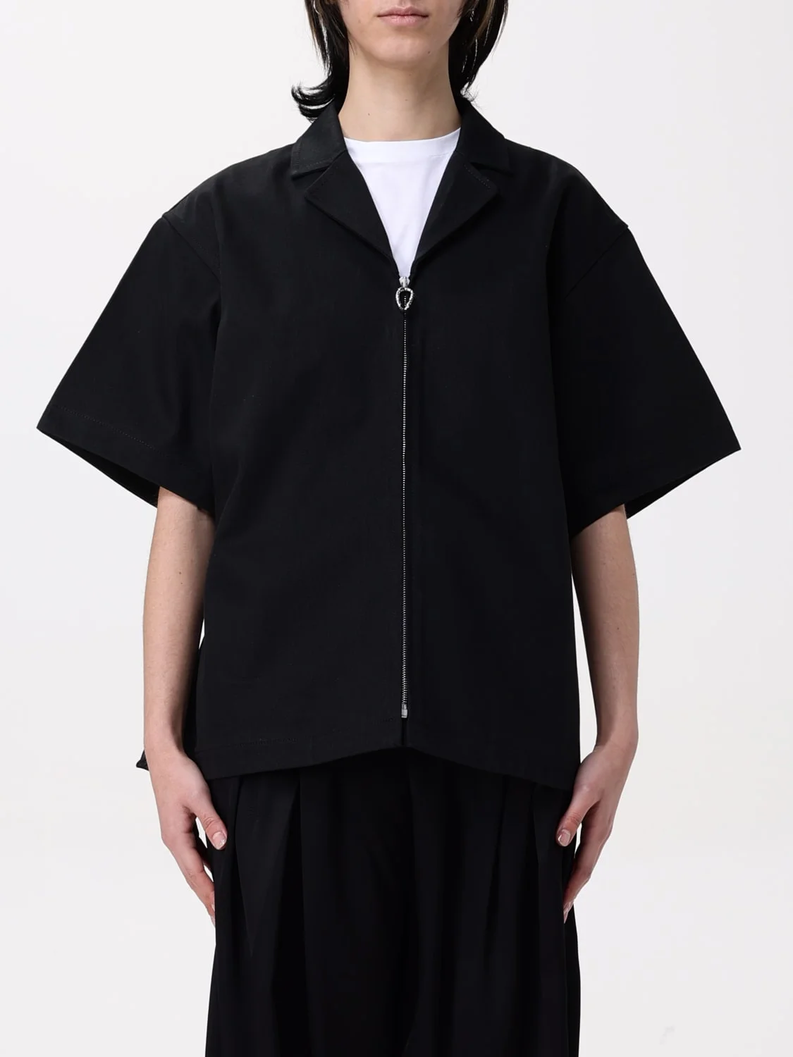 DESCRIPTION - Style: Urban-street - Model: Shirt - Neck: Cuban collar - Shoulders: Relaxed - Sleeves: Short - Closure: With zip - Bottom: With straight hemline - Length: Short jackets - Materials: Cotton - Pattern: Plain-colored DETAILS AND CARE Composition 100% cotton SIZE AND FIT Sizes not available Size and fit Relaxed fit Designer code: J02BN0214J46655 001 Giglio Code: G50553 Designer: Jil Sander Collection: Jil Sander Woman Category: Clothing Jil Sander