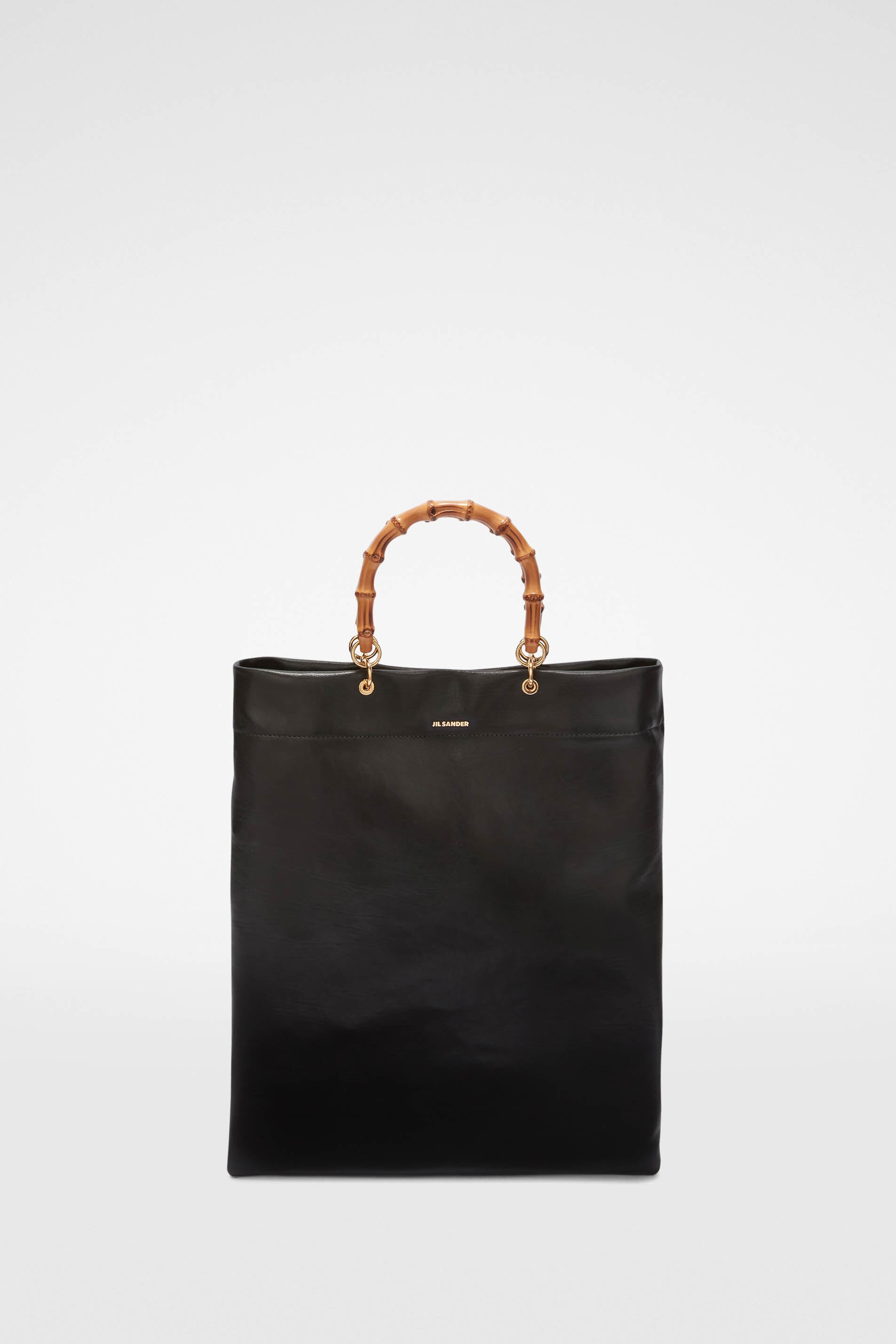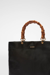 Medium-sized leather shopper bag with bamboo handles and printed jil sander logo on the front Details - double bamboo handles - nappa lining - foil embossed Jil Sander logo - 100% calf leather - made in Italy - style ID: J07WC0018-P5385 Size and measurements - height : 32,5 cm - width : 0,5 cm - depth : 41 cm