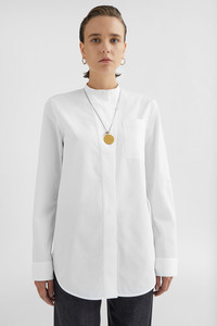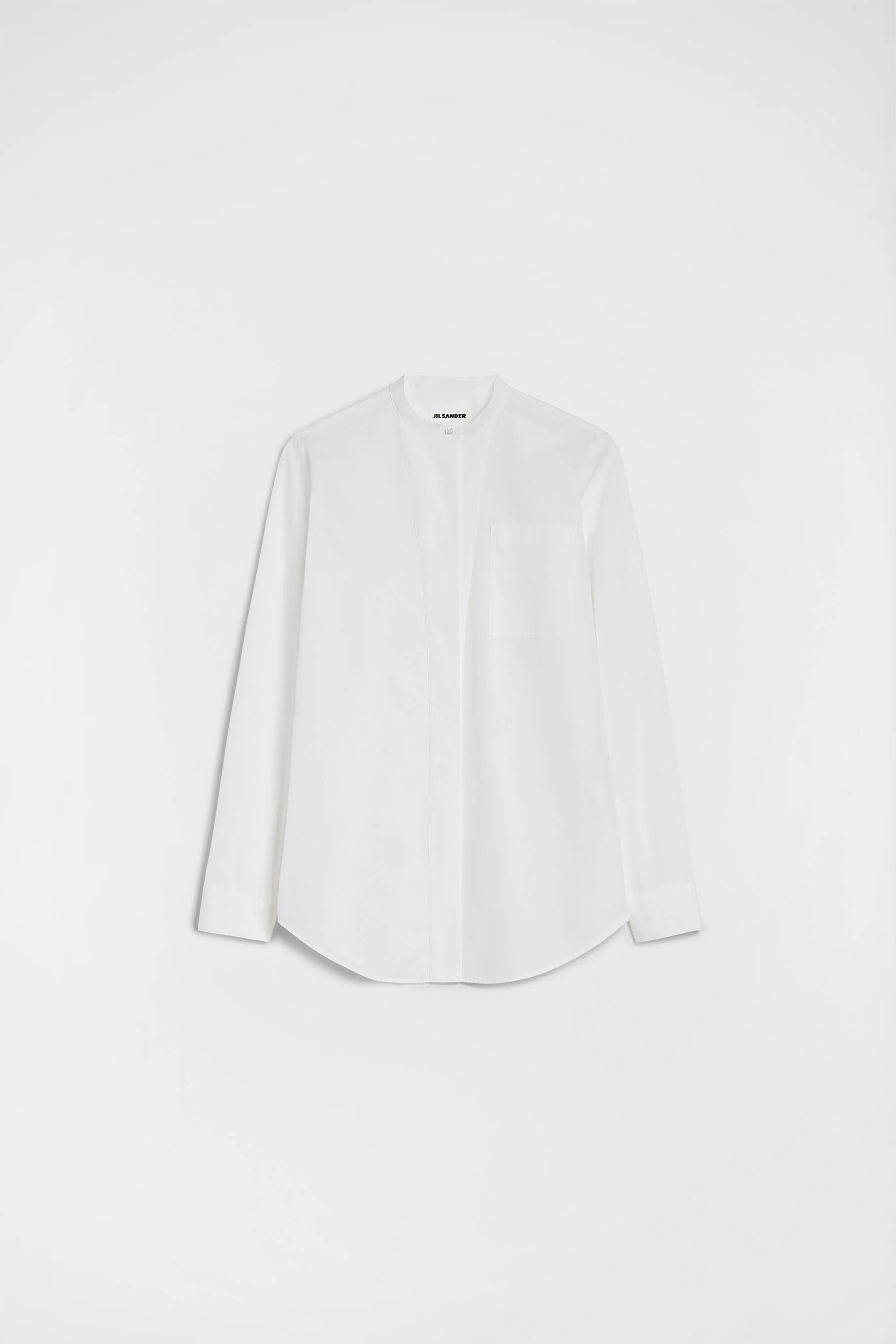 Long-sleeved organic cotton poplin shirt with stand collar and embroidered Jil Sander monogram Details - straight cut and relaxed fit - single welt breast pocket - shaped stand collar and classic cuffs - embroidered Jil Sander monogram - organic cotton poplin - 100% cotton - made in Italy - StyleID: J05DL0109J45001100 Care - dry clean only - iron with care Fit - model is 177cm/5'9" and is wearing a size 34 DE - Please note that the physical label of the item will show the German size