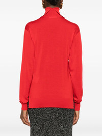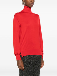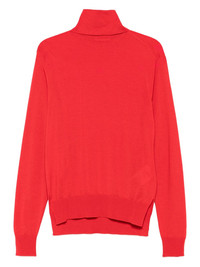 turtleneck knitted sweater Highlights - Red - Turtleneck - Ribbed trim - Long sleeves - High-low hem Made in Italy Composition Cashmere 35%, Virgin Wool 35%, Silk 30% SIZE & FIT Model measurements Height 5 ft 10 in(1.78 m) Bust/Chest 31.49 in(80 cm) Hips 37 in(94 cm) Waist 23.62 in(60 cm) Washing instructions Read Manufacturer Guidelines