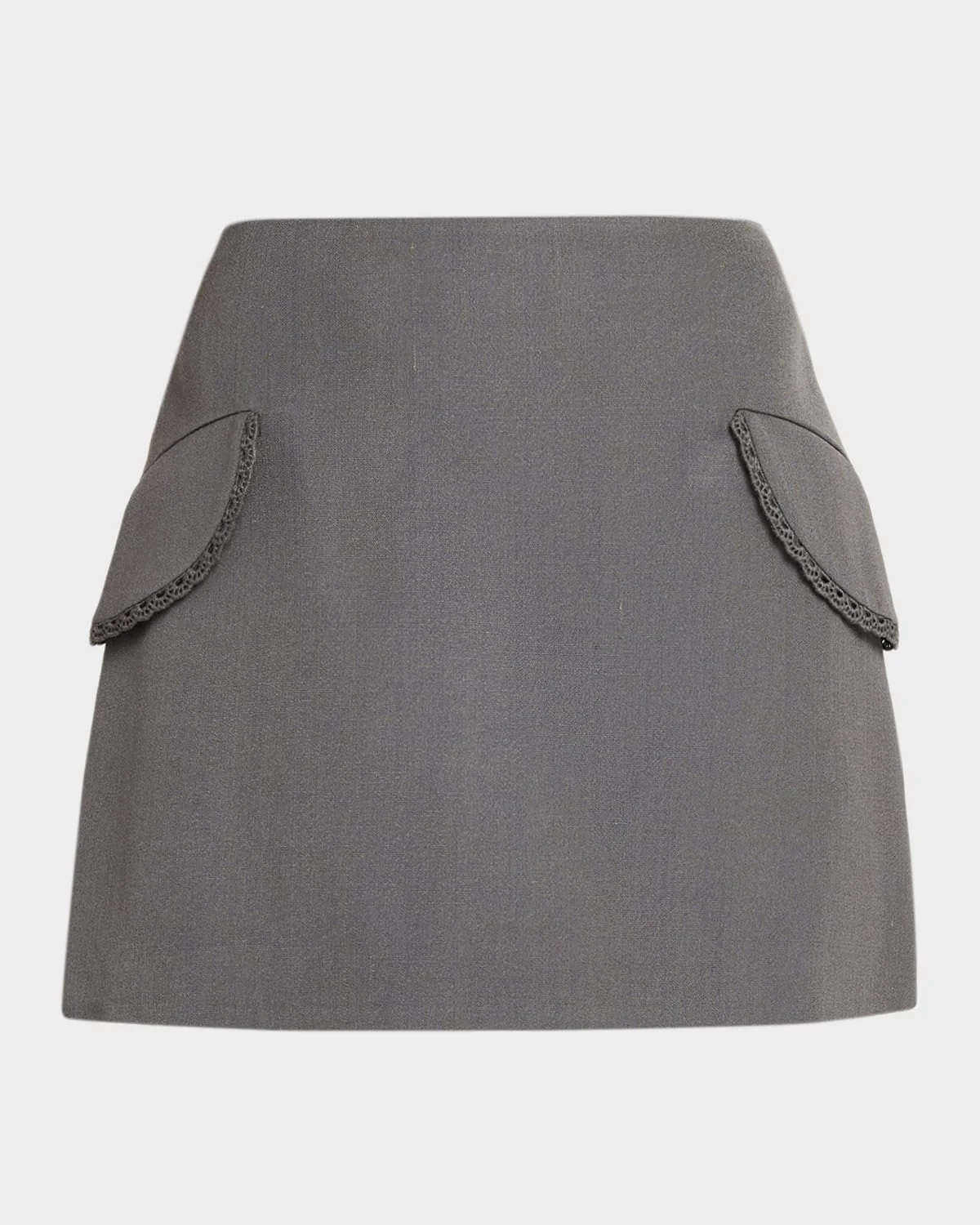 Crafted from viscose crepe, this skirt from Jil Sander features two front pockets trimmed with scalloped embroidery High waist A-line silhouette Mini length Invisible back zip Viscose/rayon/cellulose acetate/silk Lining: Viscose Professional cleaning recommended Made in Italy SIZE & FITModel measurements: 5 & apos;10" tallModel is wearing a US size 4/Small