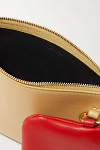 EDITORS'NOTES Jil Sander's shoulder bag is designed with a red pouch attached to the front - a unique detail that allows your smallest essentials to be even more accessible. Made from buttery leather, it's printed with the brand's moniker in gold-tone lettering to match the hardware. Detach the adjustable shoulder strap to carry it as a tote. SIZE & FIT - DETAILS & CARE - Pastel-yellow and red leather (Calf) - Zip fastening along top - Comes with dust bag - Weighs approximately 0.4lbs/ 0.2kg