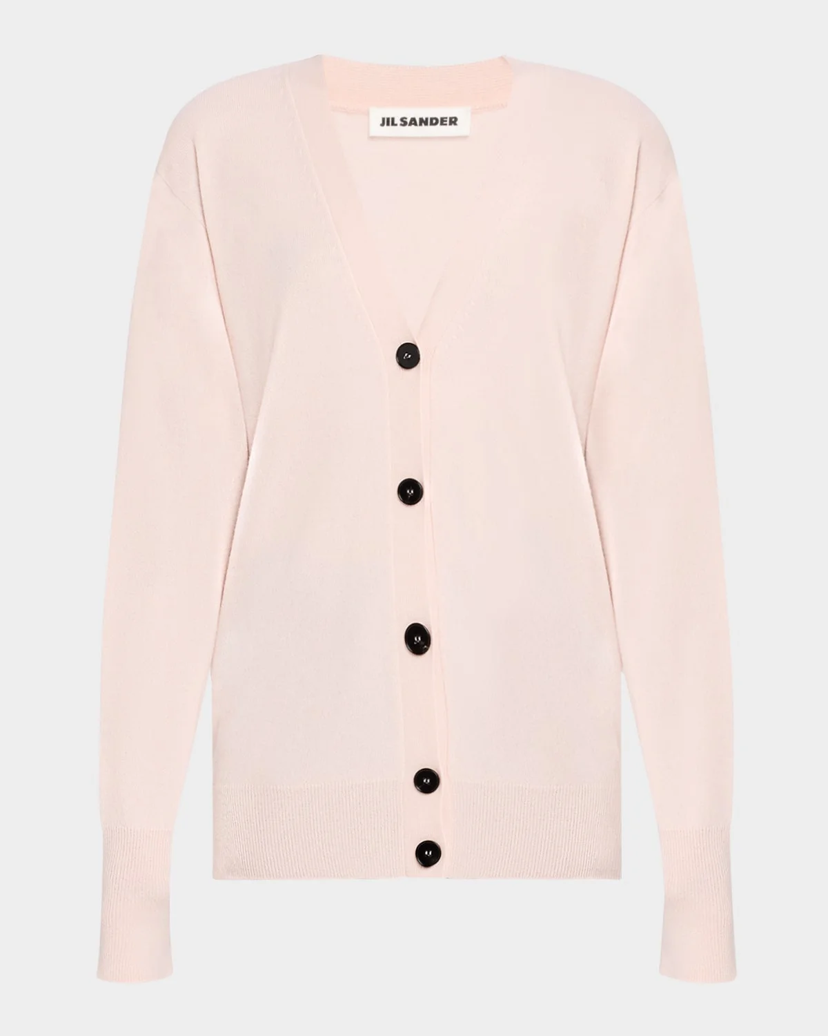 Jil Sander cardigan V neckline; button front Long sleeves Relaxed fit Ribbed cuffs and hem Cashmere Dry clean Made in Italy