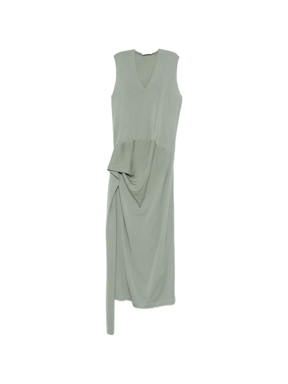 V-neck draped maxi dress Highlights - Green - V-neck - Sleeveless - Draped detailing - Gathered waist - Midi length Made in Italy Composition Virgin Wool 100% Washing instructions Dry Clean Only