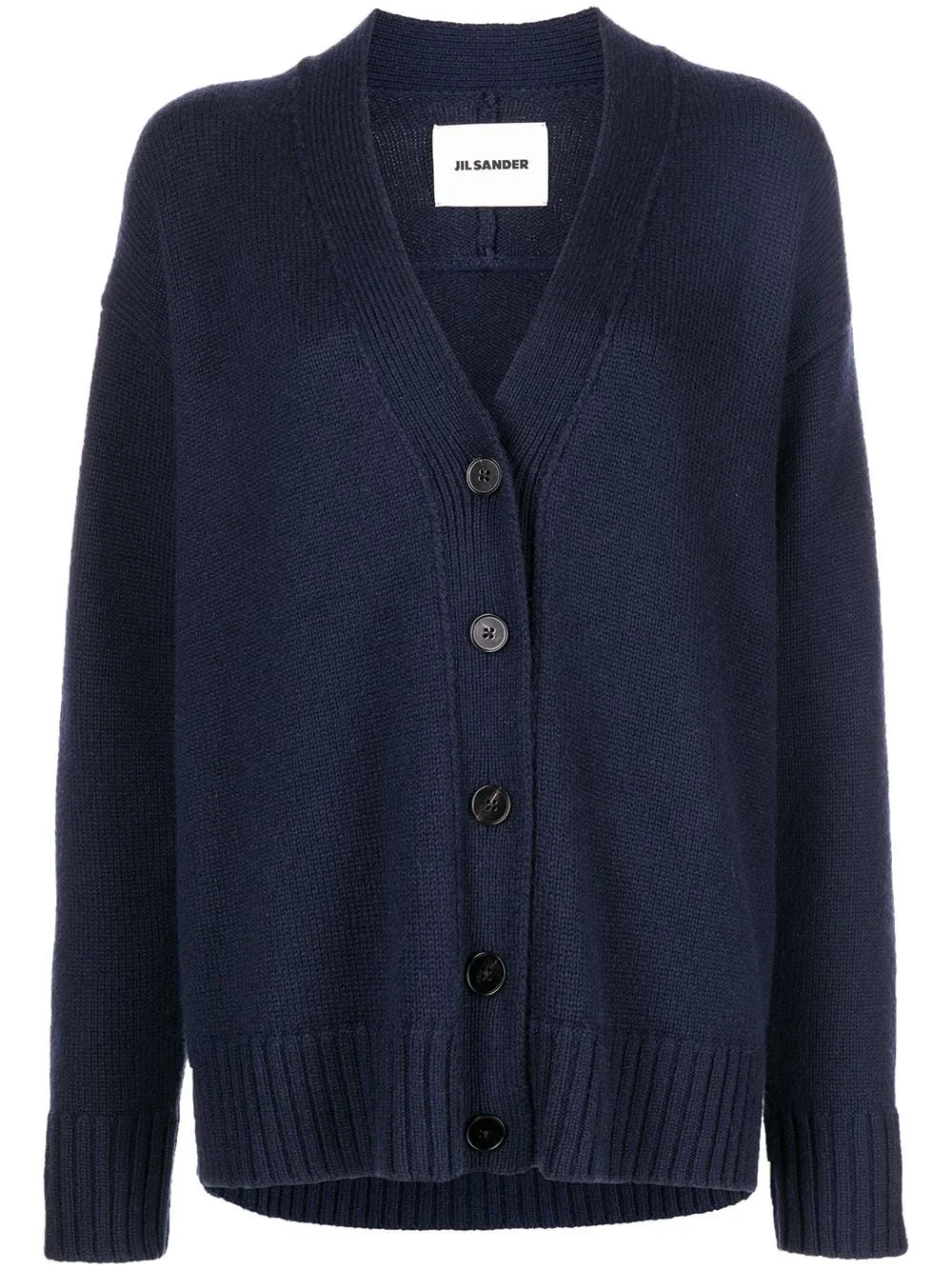 V-neck knitted cardigan navy blue cashmere fine knit ribbed detailing V-neck front button fastening long sleeves straight hem Made in Italy Composition Cashmere 100% SIZE & FIT Model measurements Height 5 ft 10 in(1.79 m) Bust/Chest 31.1 in(79 cm) Hips 35.43 in(90 cm) Waist 24.01 in(61 cm)