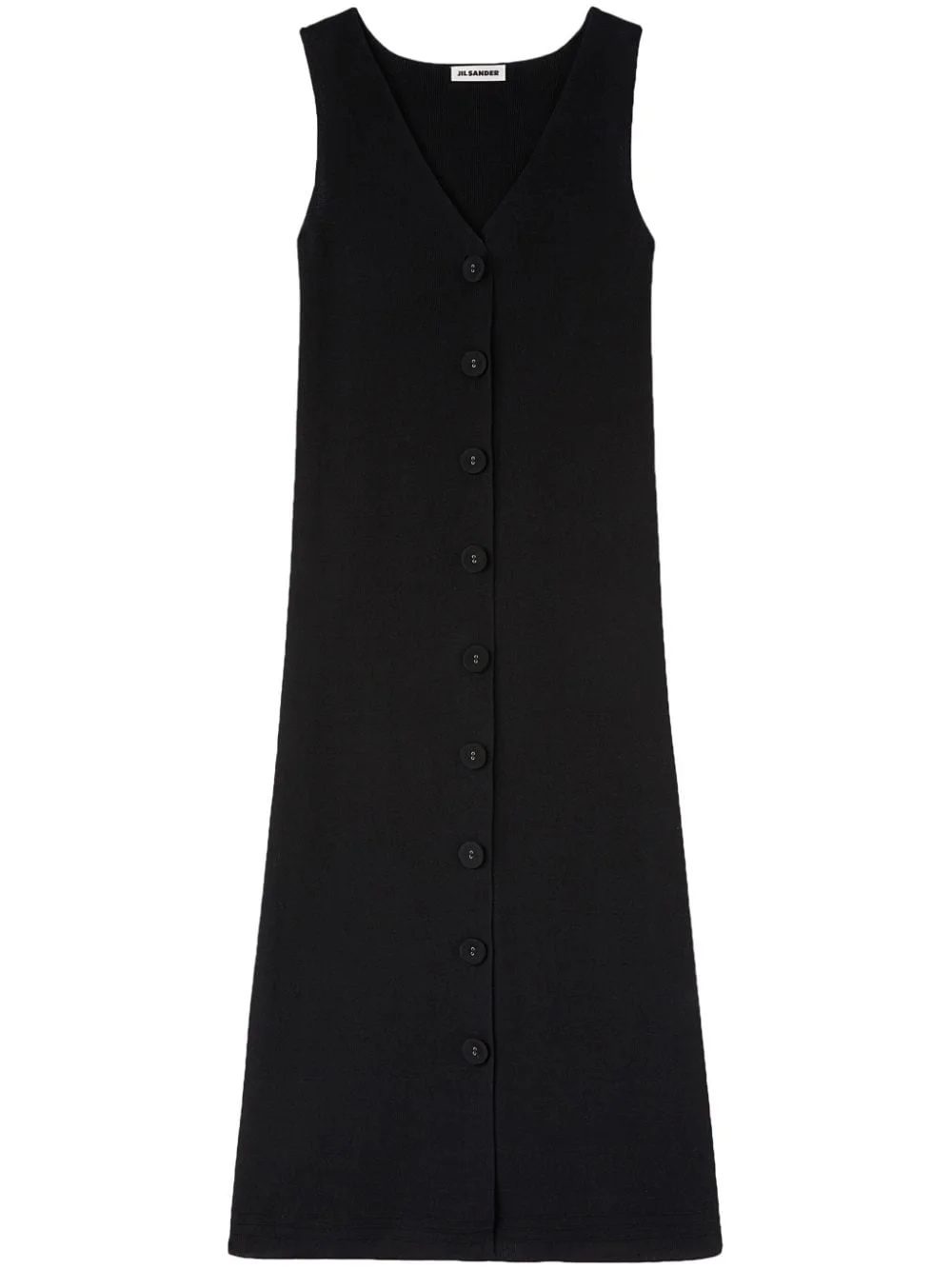 V-neck knitted midi dress Highlights - Black - Cotton blend - Knitted construction - V-neck - Front button fastening - Sleeveless - Mid-length - Straight hem Made in Italy Composition Cotton 95%, Polyamide 4%, Elastane 1% SIZE & FIT Measurement BUST 29.13 in(74 cm) LENGTH 45.66 in(116 cm) WAIST 31.49 in(80 cm) HIPS 35.43 in(90 cm) FittingInformation Designed for a relaxed fit, this piece allows for comfort and movement when worn This piece fits true to size – take your usual size Washing instructions Read Manufacturer Guidelines