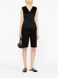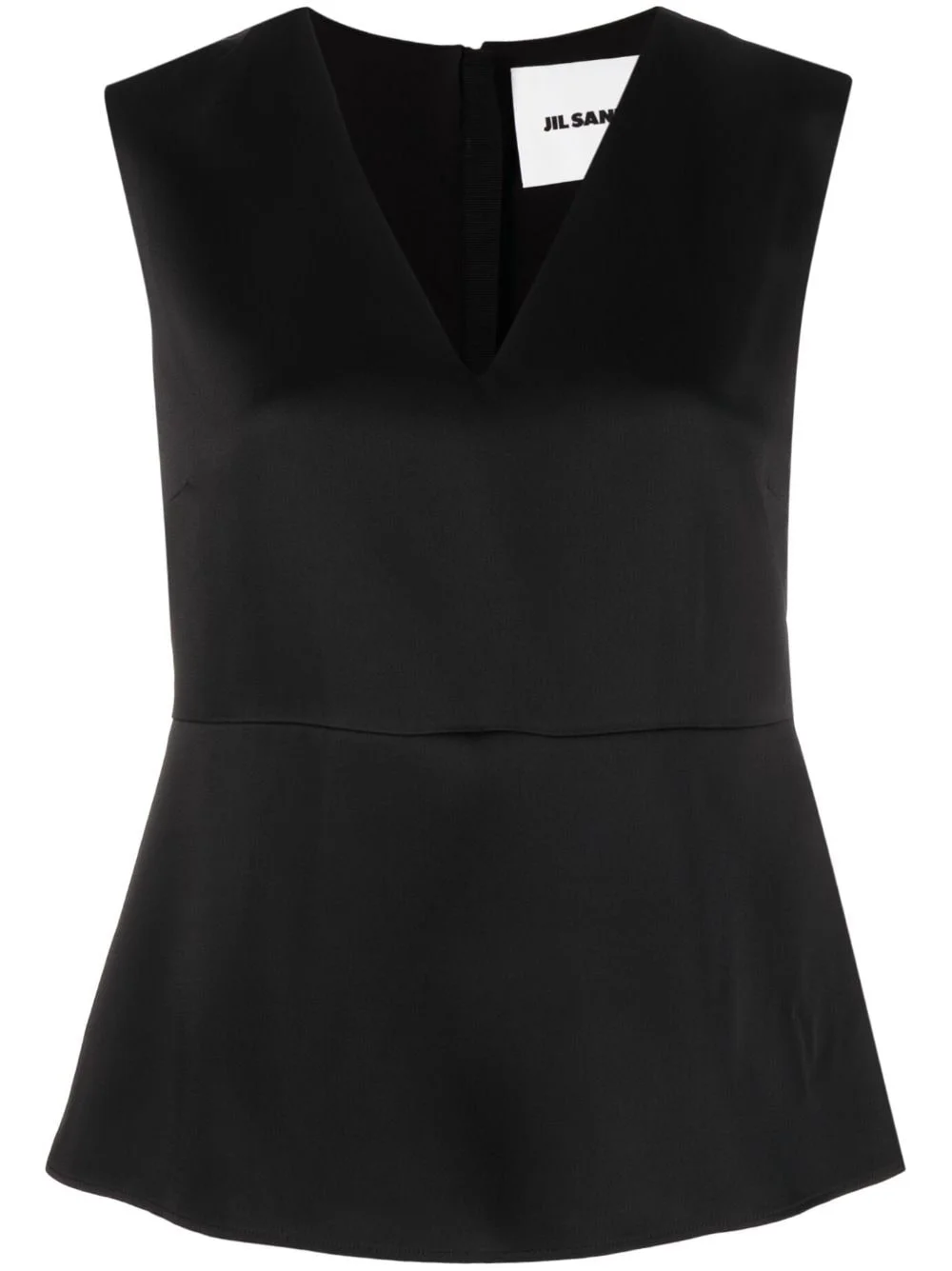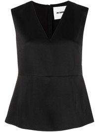 V-neck tank top Jil Sander's understated aesthetic is mirrored in this tank top. Crafted in black to a satin finish, the V-neck silhouette is enhanced with a slightly flared hem. Highlights - Black - Satin finish - V-neck - Sleeveless - Rear zip fastening - Flared hem Made in Italy Composition Outer: Acetate 74%, Viscose 26% Lining: Viscose 95%, Elastane 5% SIZE & FIT Model measurements Height 5 ft 10 in(1.79 m) Bust/Chest 31.49 in(80 cm) Hips 35.03 in(89 cm) Waist 23.62 in(60 cm) FittingInformation Designed for a slim fit that sits just away from the body offering a close yet comfortable fit The dart stitching adds structure and a closer fit in the torso of this piece Made from a midweight non-stretch fabric This piece fits true to size – take your usual size
