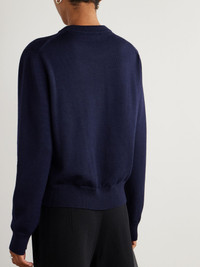 Embroidered merino wool sweater Navy