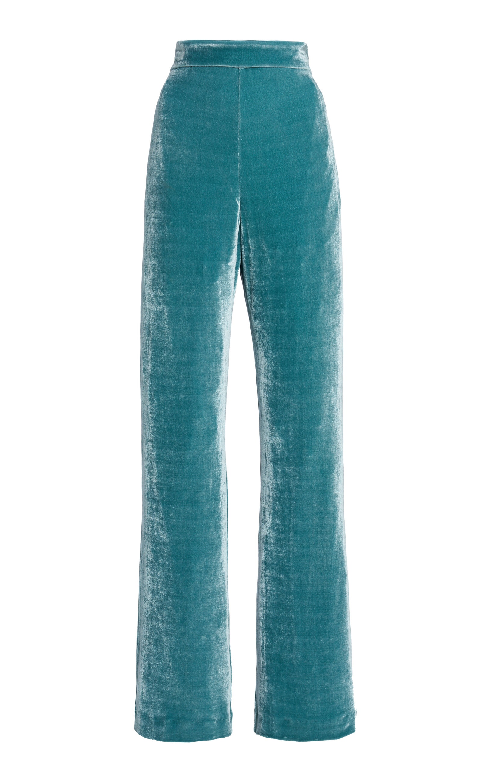 Each season, husband-and-wife duo Luke and Lucie Meier exercise exacting restraint on an effortless blend of the elevated, clean and sensual. The latest blend of sumptuous materials delivers the ease we’re all craving, in a covetable, impeccably tailored wardrobe you’ll rely on for life. Made from stretchy velvet, these pants have a sleek, fitted silhouette with a slight kick-flare leg. Style yours with the matching dress. PRODUCT DETAILS - Featured in the Resort '24 collection - Pull on - Composition: 77% Viscose-Rayon, 21% Polyamide-Nylon, 2% Elastane-Spandex; Lining: 100% Viscose-Rayon - Designer color: Dark Sage - Dry clean - Made in Italy