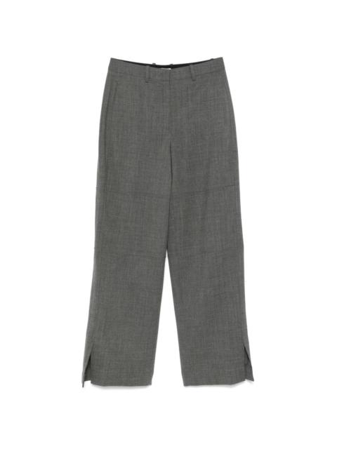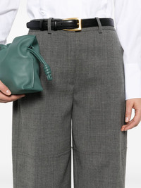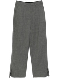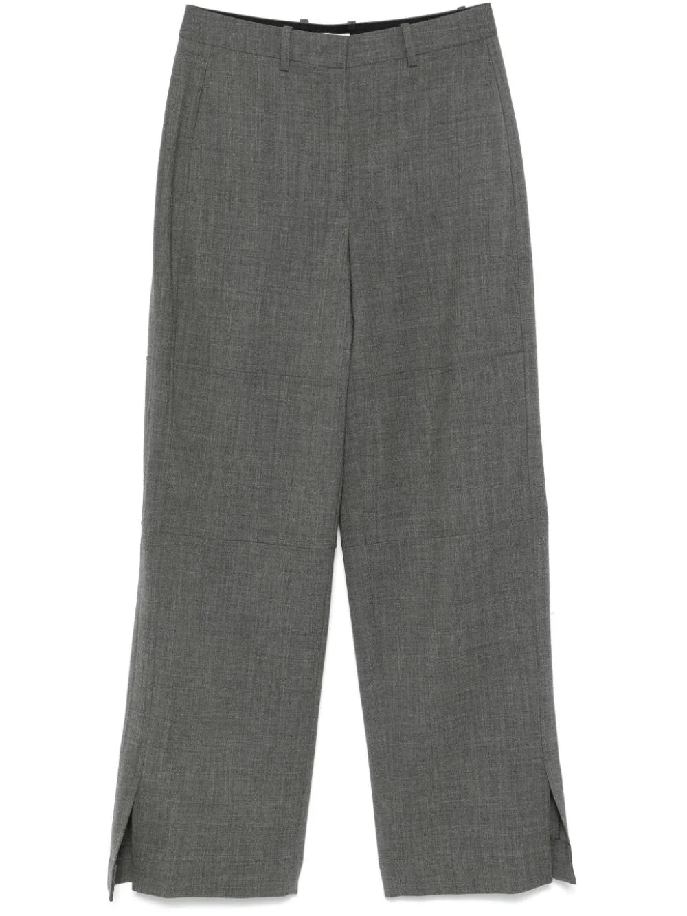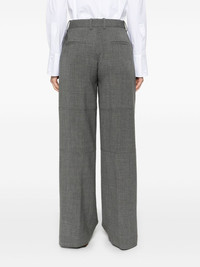 virgin wool trousers Highlights - Medium grey - Concealed front button, hook and zip fastening - Belt loops - Two side slit pockets - Two rear welt pockets Made in Italy Composition Lining: Cotton 100%, Viscose 95%, Elastane 5% Outer: Virgin Wool 100% SIZE & FIT Model measurements Height 5 ft 11 in(1.8 m) Bust/Chest 33.07 in(84 cm) Hips 37.4 in(95 cm) Waist 25.19 in(64 cm) FittingInformation Designed with a wide-leg cut, these trousers allow for a close fit at the waist and offer a loose and roomy fit over the leg Made from a midweight non-stretch fabric