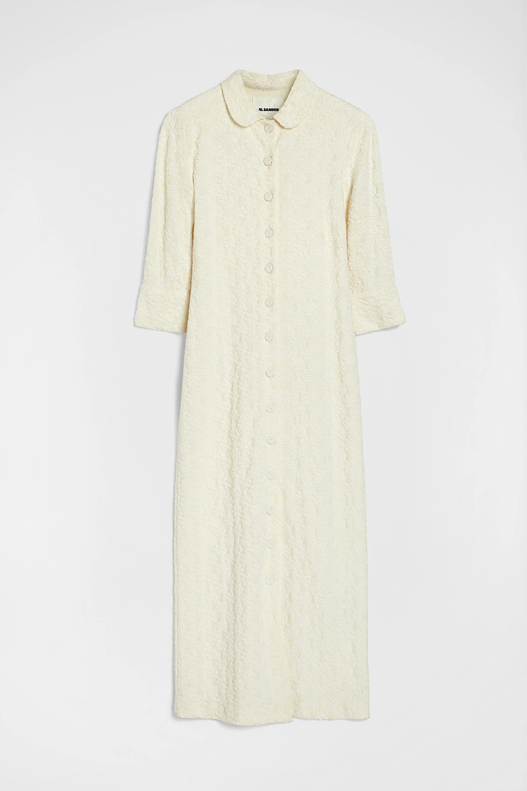 Three-quarter sleeve dress in floral viscose gaufre with round collar and front button closure Details - regular fit and long length - round collar - covered front button closure - three-quarter sleeves with buttoned cuffs - viscose lining - floral viscose gaufre - 60% viscose-rayon 24% cotton 12% polyamide-nylon 4% elastane-spandex - made in Italy - StyleID: J01CT0248J20298105 Care - dry clean only - iron with care Fit - model is 177cm/5'9" and is wearing a size 34 DE - Please note that the physical label of the item will show the German size
