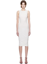 Semi-sheer cotton jersey midi dress. · Layered rib-knit crewneck and armscyes · Draping at hem Supplier color: Optic white 100% cotton. Made in Italy 251249F054003