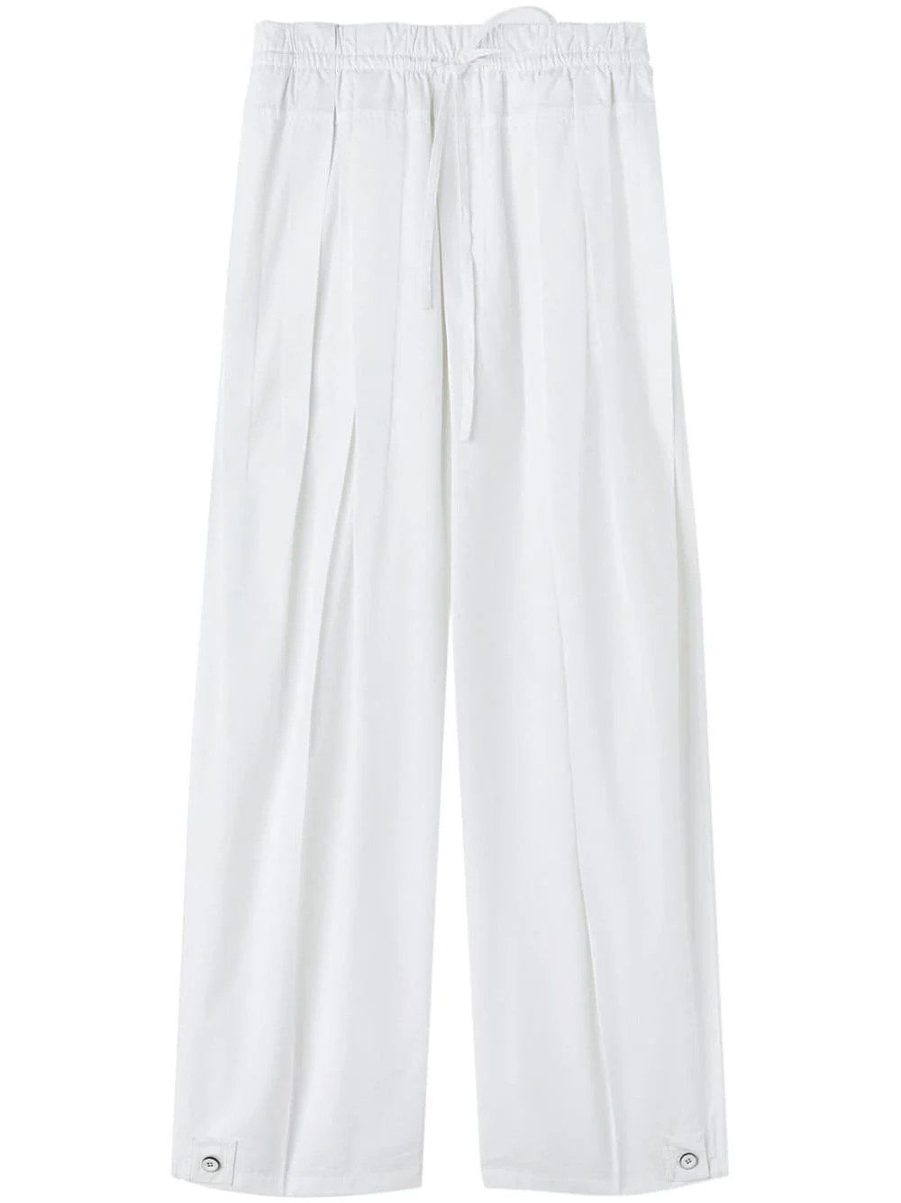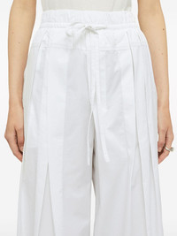 pleat-detail wide-leg trousers Highlights - White - Cotton - Pleat detailing - Pressed crease - High-waisted - Elasticated drawstring waistband - Wide leg - Two side slit pockets - Long length Made in Italy Composition Cotton 100% SIZE & FIT FittingInformation Designed with a wide-leg cut, these trousers allow for a close fit at the waist and offer a loose and roomy fit over the leg Adjust this piece’s waistband to your preference using the drawstring Washing instructions Read Manufacturer Guidelines