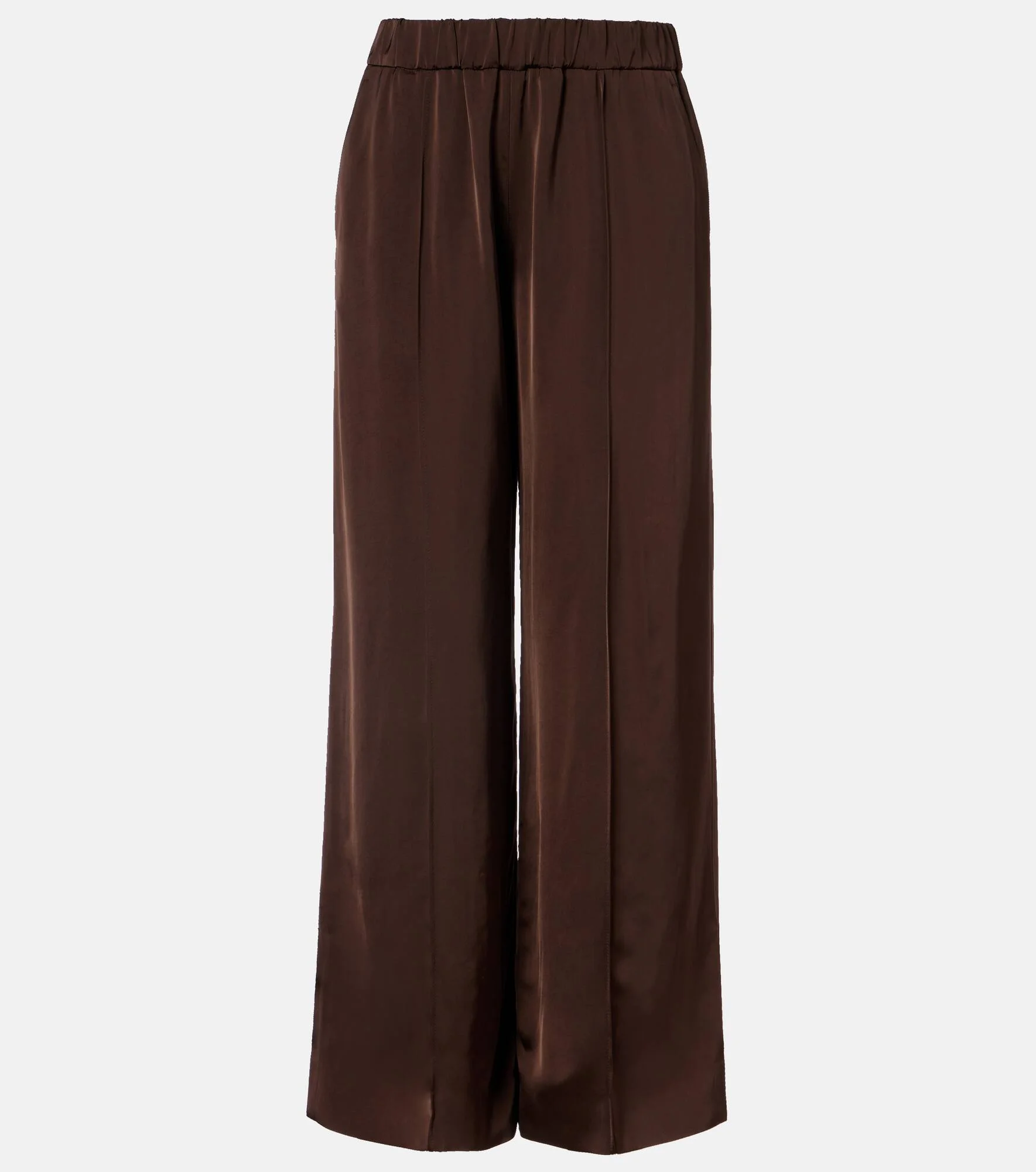 Jil Sander's sophisticated minimalism is characterized by neutral tones, clean lines, and precisely-placed details. Made from a fluid fabric, these pants feature an elasticated waistband and visible seams along the wide legs. Product Details - Material: 100% viscose - Care instructions: dry clean - Made in Italy - Color: brown - Designer color name: Plum - Elasticated waistband - Pockets: slant pockets, back pocket - Item number: P01127600 Size & Fit - True to size - Elasticated waist - Non-stretchy fabric - Wide-leg - The model seen in the picture is 178cm-5'10" and wearing a size DE 34