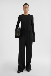 Track-inspired satin trousers with gathered waist Details - relaxed fit - in-seam pockets - drawstring at waist - viscose satin - 74% acetate 26% viscose-rayon - made in Italy - StyleID: J02KA0180J76018001 Care - dry clean only - iron with care Fit - model is 177cm/5'9" and is wearing a size 34 DE - Please note that the physical label of the item will show the German size