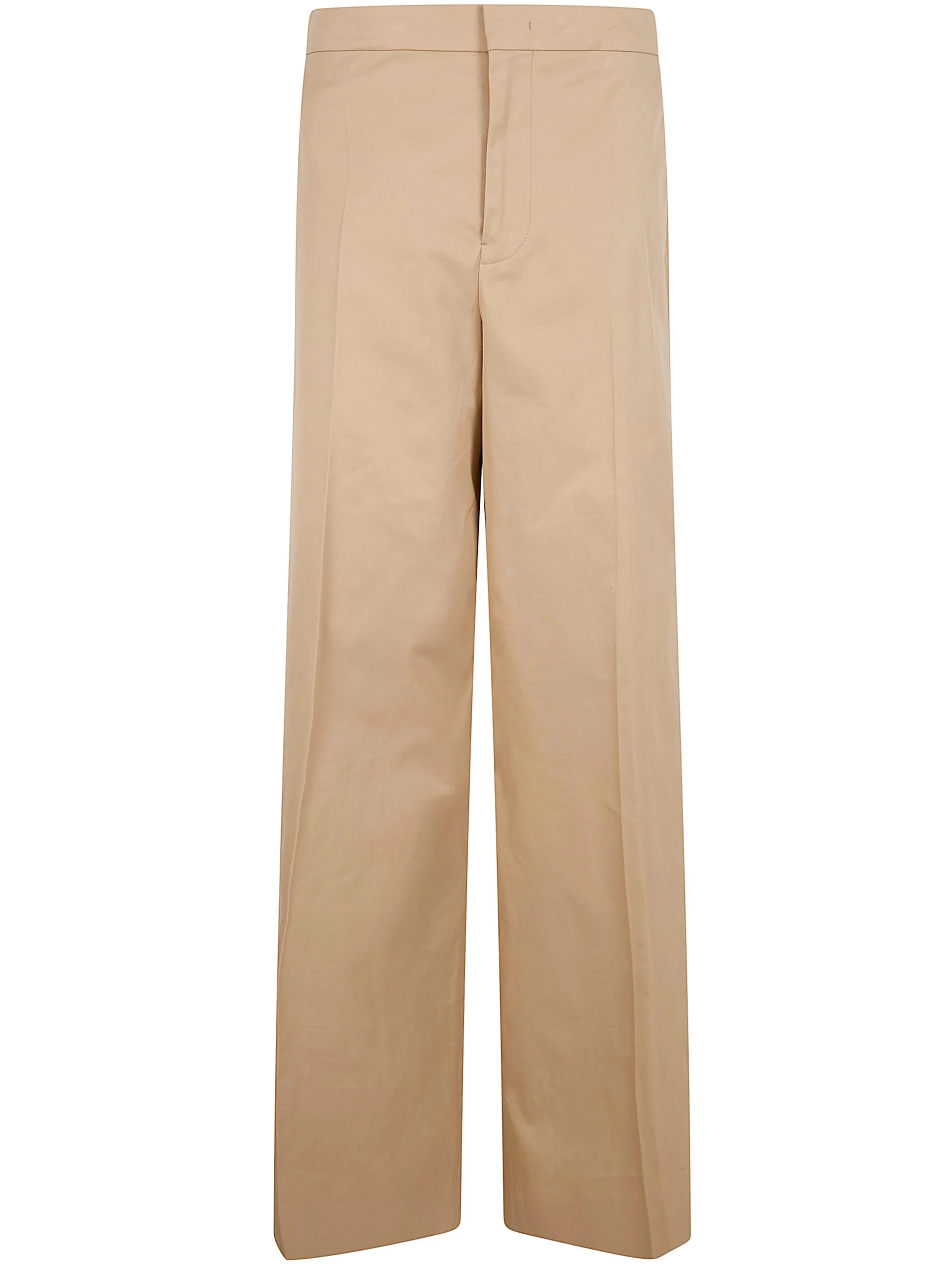 Introducing the 'WIDE LEG TROUSERS' from JIL SANDER, a stunning addition to your spring-summer wardrobe. Crafted from premium 100% cotton, these trousers feature a sophisticated beige hue that exudes elegance. Made in Italy, they reflect the brand's commitment to artisanal craftsmanship and quality. The design boasts a wide-leg silhouette, offering both comfort and style, perfect for creating a chic ensemble. Ideal for both casual outings and more formal occasions, pair them with a fitted top and heels for an effortlessly refined look. Experience the allure of luxury fashion with these exclusive trousers, designed for the modern individual.. MadeIn: Italy IT Product code: J02KA0390.J45322 236 DARK SAND