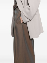 wide-leg trousers Highlights - Brown - Concealed front button, hook and zip fastening - Two side inset pockets - Two rear jetted pockets - Belt loops Made in Italy Composition Outer: Virgin Wool 67%, Polyester 33% SIZE & FIT Model measurements Height 5 ft 10 in(1.78 m) Bust/Chest 29.92 in(76 cm) Hips 34.64 in(88 cm) Waist 24.8 in(63 cm) Measurement HIPS 38.58 in(98 cm) Outside Leg 45.66 in(116 cm) WAIST 28.34 in(72 cm) FittingInformation Designed with a wide-leg cut, these trousers allow for a close fit at the waist and offer a loose and roomy fit over the leg Made from a midweight non-stretch fabric