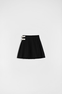 Pleated wool canvas skirt with frayed hem and double leather buckle closure Details - regular fit - normal waist - double leather buckle closure in contrasting colour - squared metal buckle - cotton lining - wool canvas - 100% wool - made in Italy - StyleID: J02MA0314J41557001 Care - dry clean only - iron with care Fit - model is 177cm/5'9" and is wearing a size 34 DE - Please note that the physical label of the item will show the German size