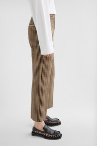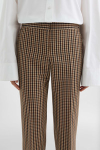 Micro check wool canvas trousers with slightly cropped leg and side contrast stitching Details - regular fit - normal crotch and slightly low waist - zip and hook closure - front American pockets and back welt pockets - pressed crease detail - side contrast stitching - cotton lining - micro checkered dry wool canvas - 100% virgin wool - made in Italy - StyleID: J01KA0181J40271242 Care - dry clean only - iron with care Fit - model is 177cm/5'9" and is wearing a size 34 DE - Please note that the physical label of the item will show the German size