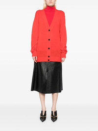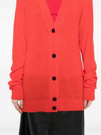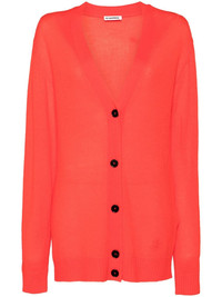 Jil Sanda+ logo embroidery cardigan Highlights - Scarlet red - Wool - Knitted construction - Front button fastening - V-neck - Contrasting button - Embroidered logo to the front - Ribbed cuffs and hem - Long sleeves Made in Italy Composition Wool 100% SIZE & FIT Model measurements Height 5 ft 9 in(1.76 m) Bust/Chest 31.1 in(79 cm) Hips 35.03 in(89 cm) Waist 24.4 in(62 cm)