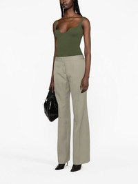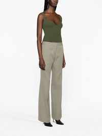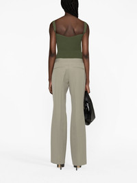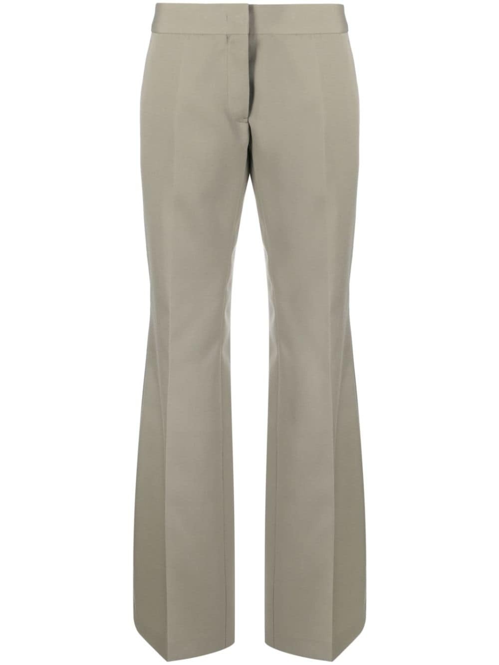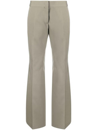 wool flared trousers Jil Sander is lauded for its minimalist approach to tailoring, and these trousers are proof. They’re cut from wool to a flared silhouette neatened with pressed creases. Highlights - Light green - Wool - Concealed front fastening - Two side slit pockets - Two rear welt pockets - Cotton lining - Mid-rise - Flared Composition Lining: Cotton 100% Outer: Wool 100% SIZE & FIT Model measurements Height 5 ft 11 in(1.8 m) Bust/Chest 34.3 in(87 cm) Hips 35.8 in(91 cm) Waist 24.8 in(63 cm) FittingInformation Designed with a flared hem, these trousers allow for a close fit at the waist with a slim fit over the leg and widening towards the hem Made from a midweight non-stretch fabric This piece fits true to size – take your usual size