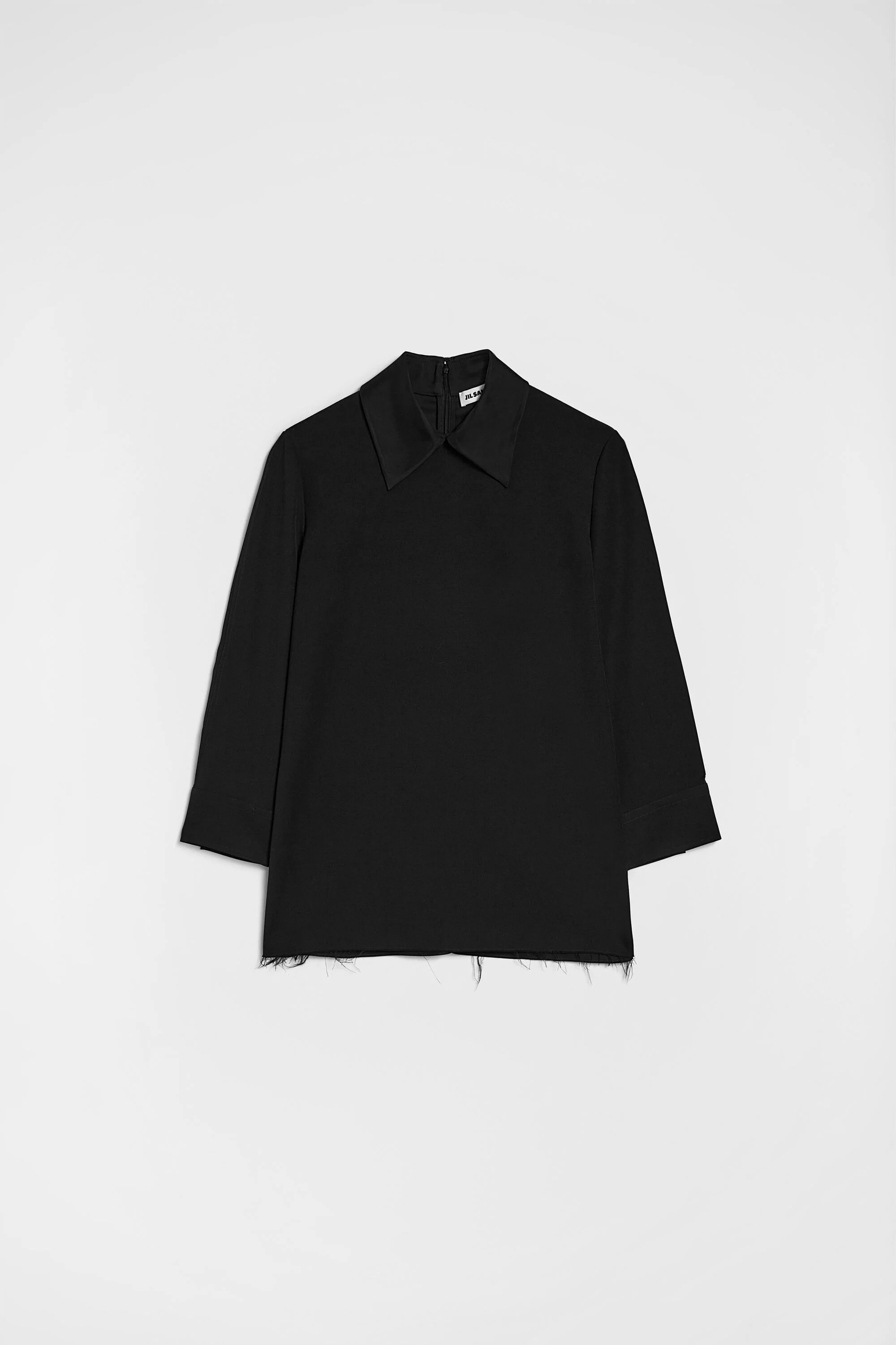 Three-quarter sleeve wool gabardine shirt with contrast back Details - regular fit - pointed shirt collar - centre-back zip closure - three-quarter sleeves with buttoned cuffs - raw edge side seam finishing - side slits - sharp wool gabardine on the front - plain viscose on the back - 100% wool - made in Italy - StyleID: J02NC0277J40002001 Care - dry clean only - iron with care Fit - model is 177cm/5'9" and is wearing a size 34 DE - Please note that the physical label of the item will show the German size