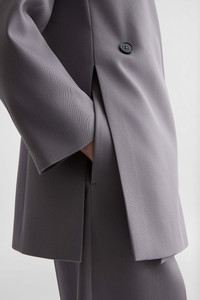 Long wool gabardine jacket with wrap design and high side splits Details - slim and long fit - peaked rever - front two-button closure - single welt pocket on chest - viscose lining - sharp wool gabardine - 100% wool - made in Italy - StyleID: J01BN0141J40002466 Care - dry clean only - iron with care Fit - model is 177cm/5'9" and is wearing a size 34 DE - Please note that the physical label of the item will show the German size
