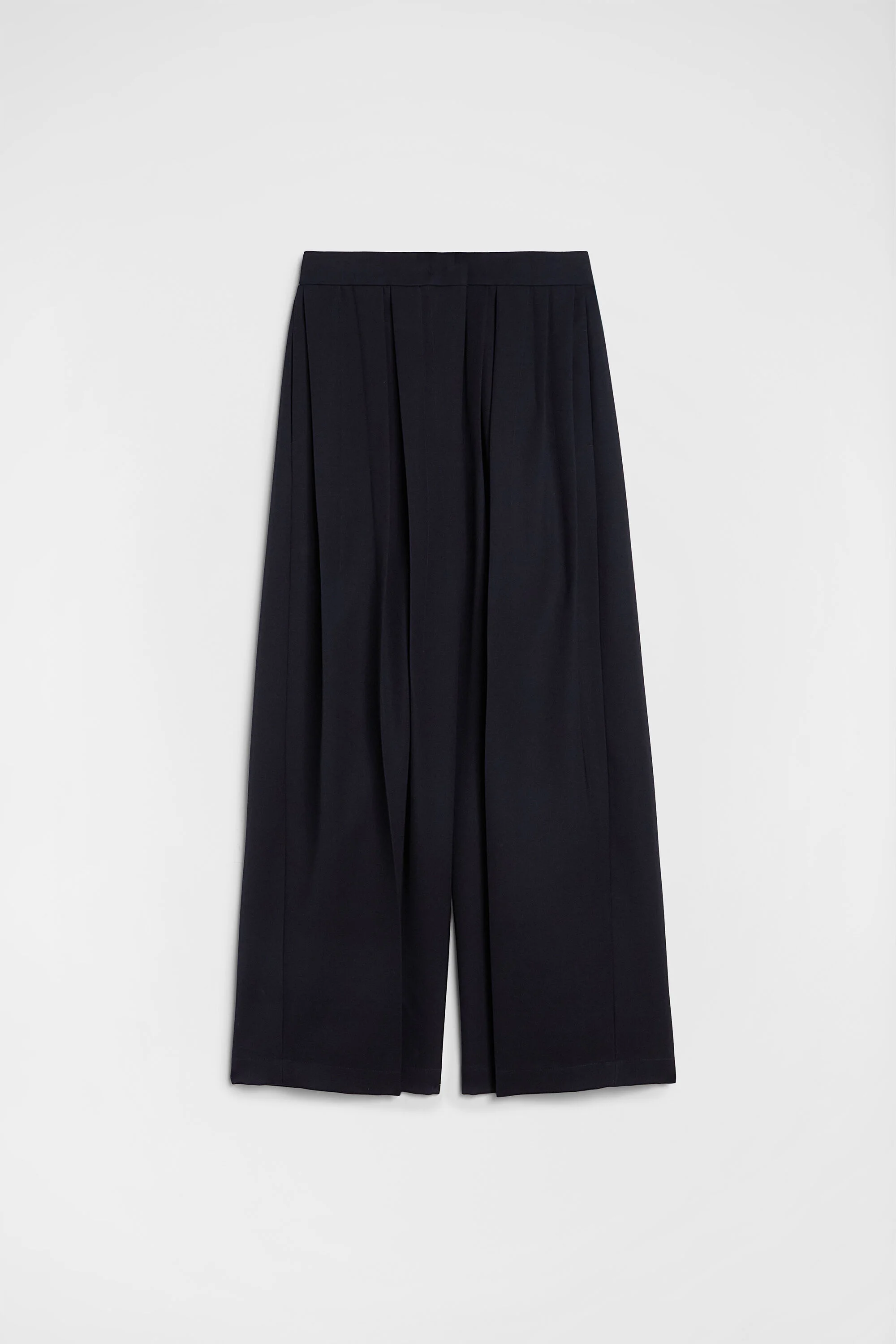 Voluminous wool gabardine trousers with irregular front pleats Details - relaxed fit - slightly dropped crotch and low waist - zip and hook closure - side-seam pockets - back welt pockets - cotton pocket lining - sharp wool gabardine - 100% wool - made in Italy - StyleID: J02KA0371J40002401 Care - dry clean only - iron with care Fit - model is 177cm/5'9" and is wearing a size 34 DE - Please note that the physical label of the item will show the German size