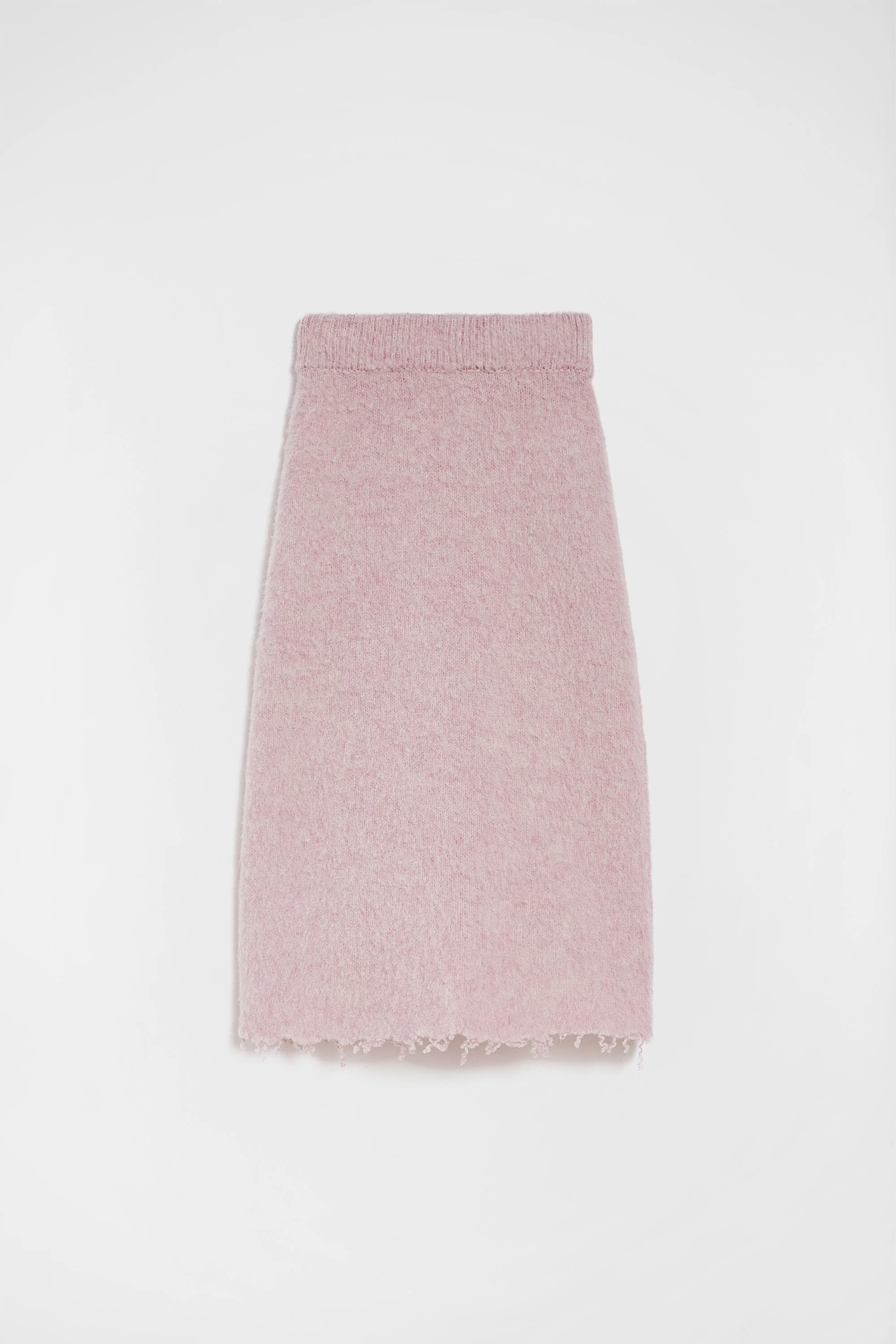 Mid-length brushed wool skirt with frayed hem Details - regular fit - slightly high waist - elasticated waistband - brushed Shetland knit wool - 100% wool - made in Italy - StyleID: J40MA0173J14792658 Care - dry clean only - iron with care Fit - model is 177cm/5'9" and is wearing a size 34 DE - Please note that the physical label of the item will show the German size