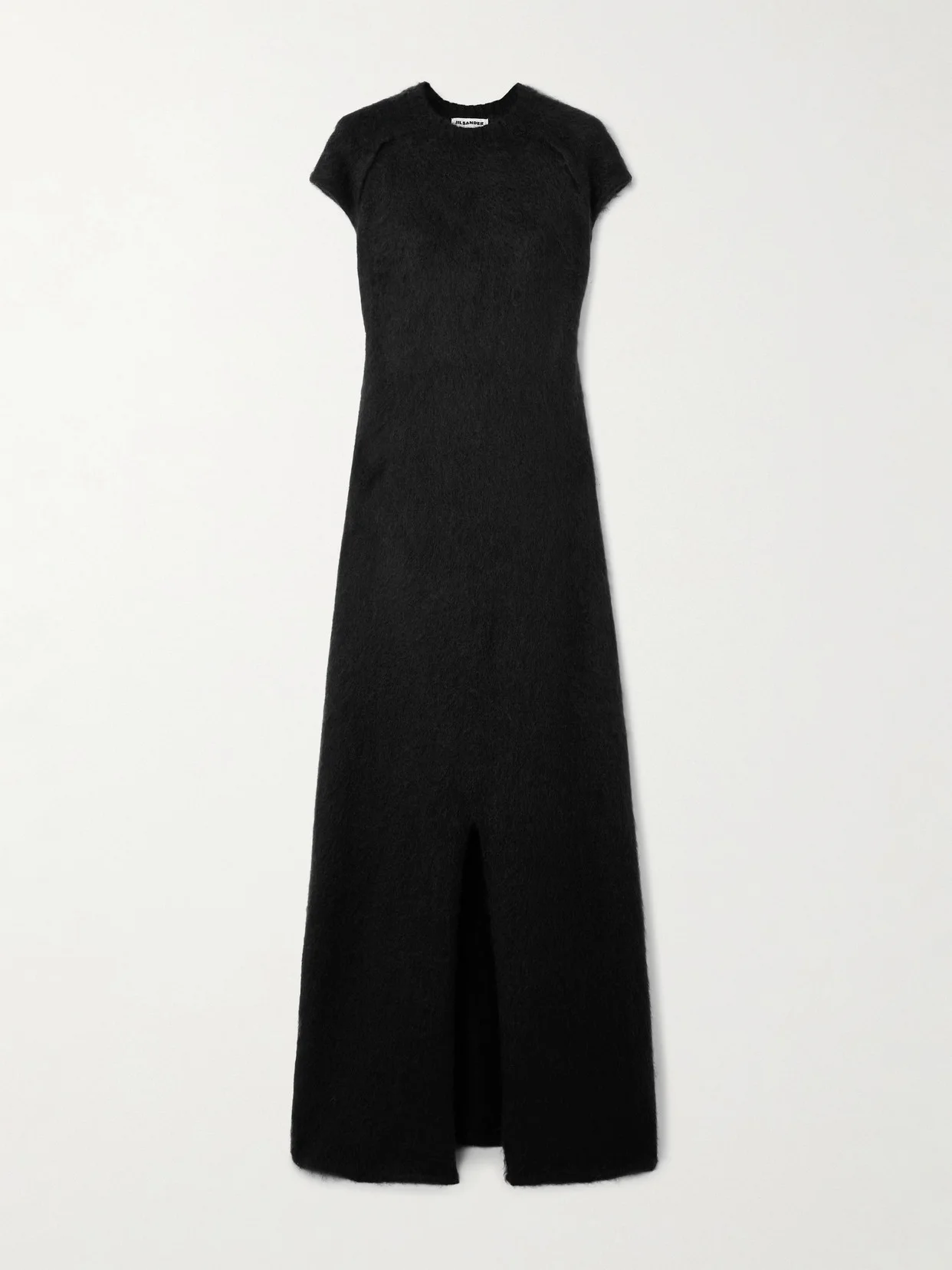 Jil Sander's dress is slit at the front to create beautiful movement. It's knitted from sumptuous wool, mohair and silk-blend and will serve as the perfect base for many different occasions.