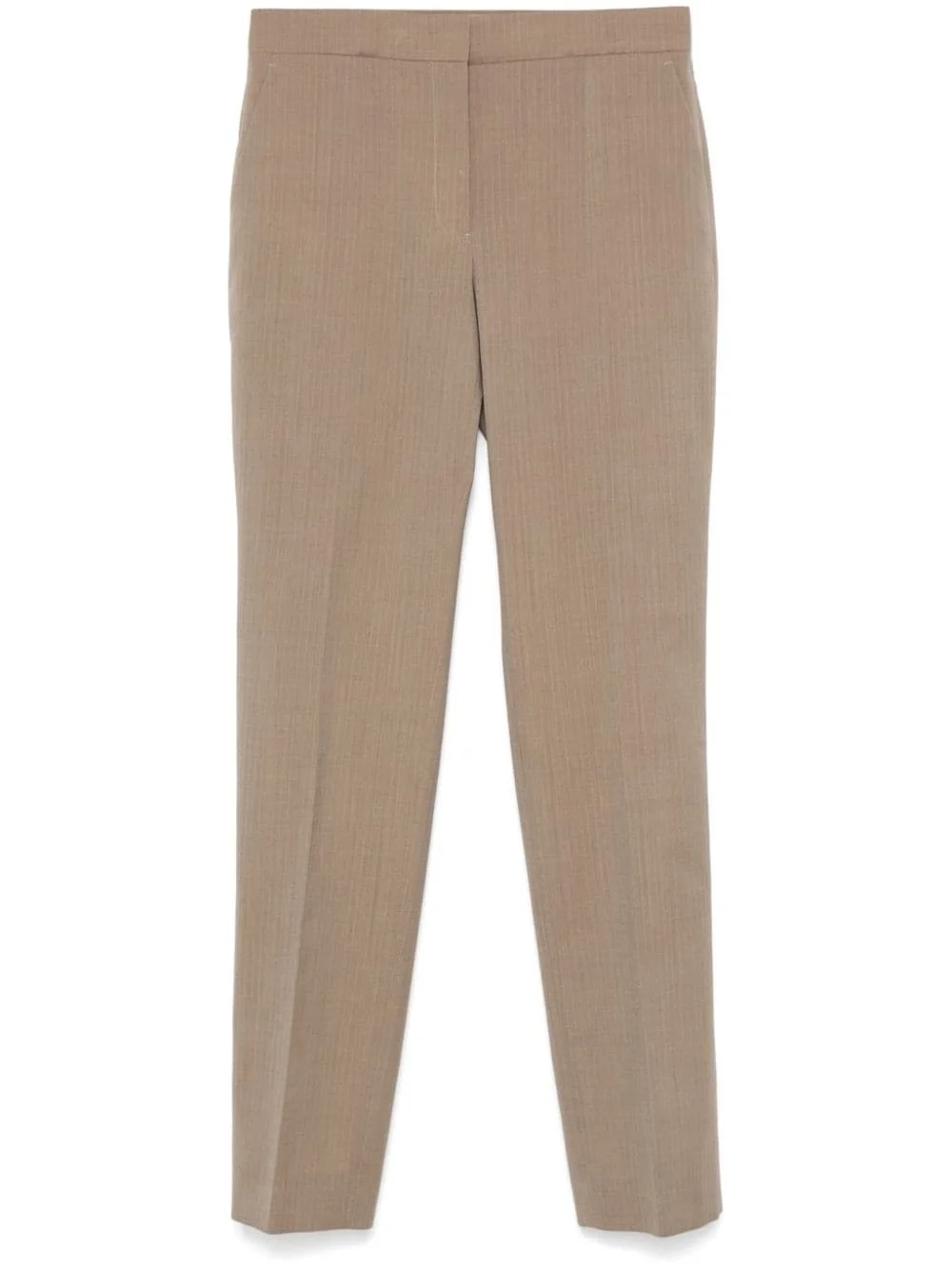 wool tailored trousers Highlights - Beige - Wool - Ripstop texture - Concealed front button, hook and zip fastening - Mid-rise - Seam detailing - Two side slash pockets - Dart detailing - Two rear welt pockets - Rear slits - Straight leg Made In Italy Composition Outer: Wool 100% Lining: Cotton 100% SIZE & FIT Model measurements Height 5 ft 11 in(1.8 m) Bust/Chest 31.49 in(80 cm) Hips 36.61 in(93 cm) Waist 24.4 in(62 cm) FittingInformation Designed for a slim fit, these trousers offer a close fit at the waist, allowing a comfortable close fit and some movement over the leg Made from a midweight non-stretch fabric