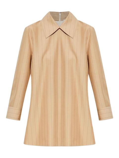 pinstriped blouse Highlights - Beige - Rear zip fastening - Long sleeves - Vertical stripe pattern - Straight hem Made in Italy Composition Wool 76%, Mohair 23%, Cotton 1% Washing instructions Read Manufacturer Guidelines