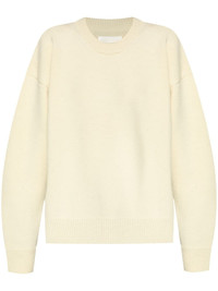 drop-shoulder crew-neck jumper Highlights - Cream white - Wool-cashmere blend - Ribbed knit - Screw-clasp fastening - Crew neck - Long sleeves - Ribbed cuffs and hem - Side slits Made in Italy Composition Wool 95%, Cashmere 5% SIZE & FIT FittingInformation Designed to be unstructured, offering a loose fit throughout Made with a midweight knit, this piece offers some stretch This piece fits true to size – take your usual size