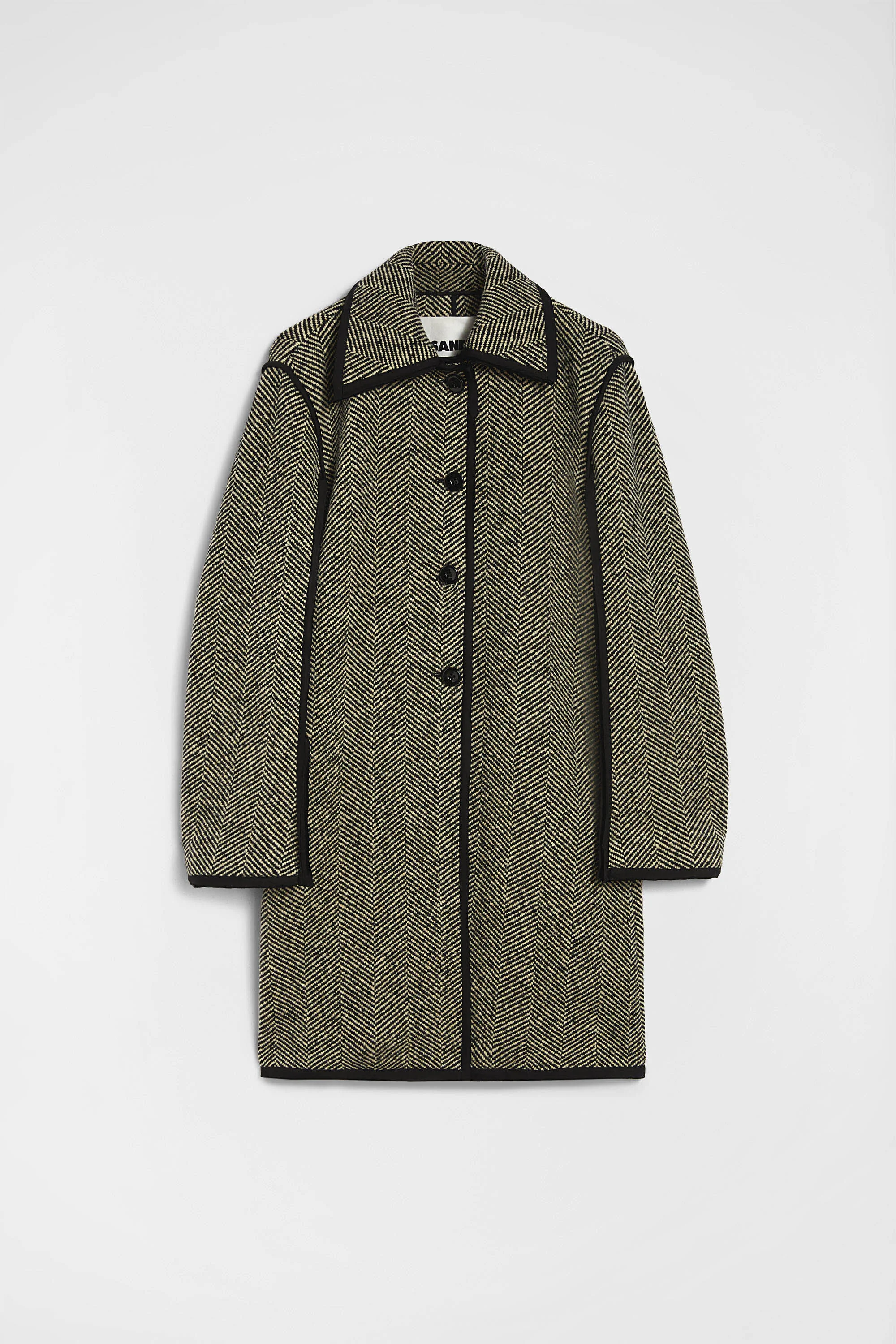 Mid-length single-breasted herringbone virgin wool blend coat with contrast trims Details - oversized fit - dropped shoulders - pointed collar - centre-front button closure - side pockets - contrast raw edges - viscose lining - herringbone virgin wool blend - 80% virgin wool 20% polyamide-nylon - made in Italy - StyleID: J02AA0194J40261092 Care - dry clean only - iron with care Fit - model is 177cm/5'9" and is wearing a size 34 DE - Please note that the physical label of the item will show the German size