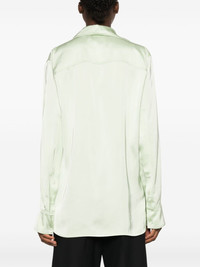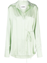 wrap satin shirt Highlights - Mint green - Satin finish - Wrap design - Pointed flat collar - Side tie fastening - Long sleeves - Buttoned cuffs - Rear curved hem Made in Italy Composition Viscose 100% SIZE & FIT Model measurements Height 5 ft 10 in(1.78 m) Bust/Chest 31.49 in(80 cm) Hips 37 in(94 cm) Waist 23.62 in(60 cm) FittingInformation Designed to be unstructured, offering a loose fit throughout Made from a midweight non-stretch fabric This piece fits true to size – take your usual size Washing instructions Dry Clean Only