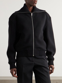 Jil Sander's clothes are renowned for their refined, architectural shapes that play on proportion in a minimalist way. This jacket is made from a wool-blend in a slouchy shape with billowy sleeves and ribbed trims. The wide collar lays flat on the shoulders. Size & Fit - Intended to be oversized; we recommend sizing down if you prefer a closer fit - Weighted, non-stretchy fabric - Model is 177cm/ 5'10" and is wearing a FR 36 Model measurements: - Bust: 80cm/ 31.5" - Waist: 60cm/ 23.5" - Hip: 89cm/ 35" Details & Care - Navy wool-blend - Zip fastening through front - 67% virgin wool, 33% polyamide; lining: 100% viscose - Fully lined - Dry clean
