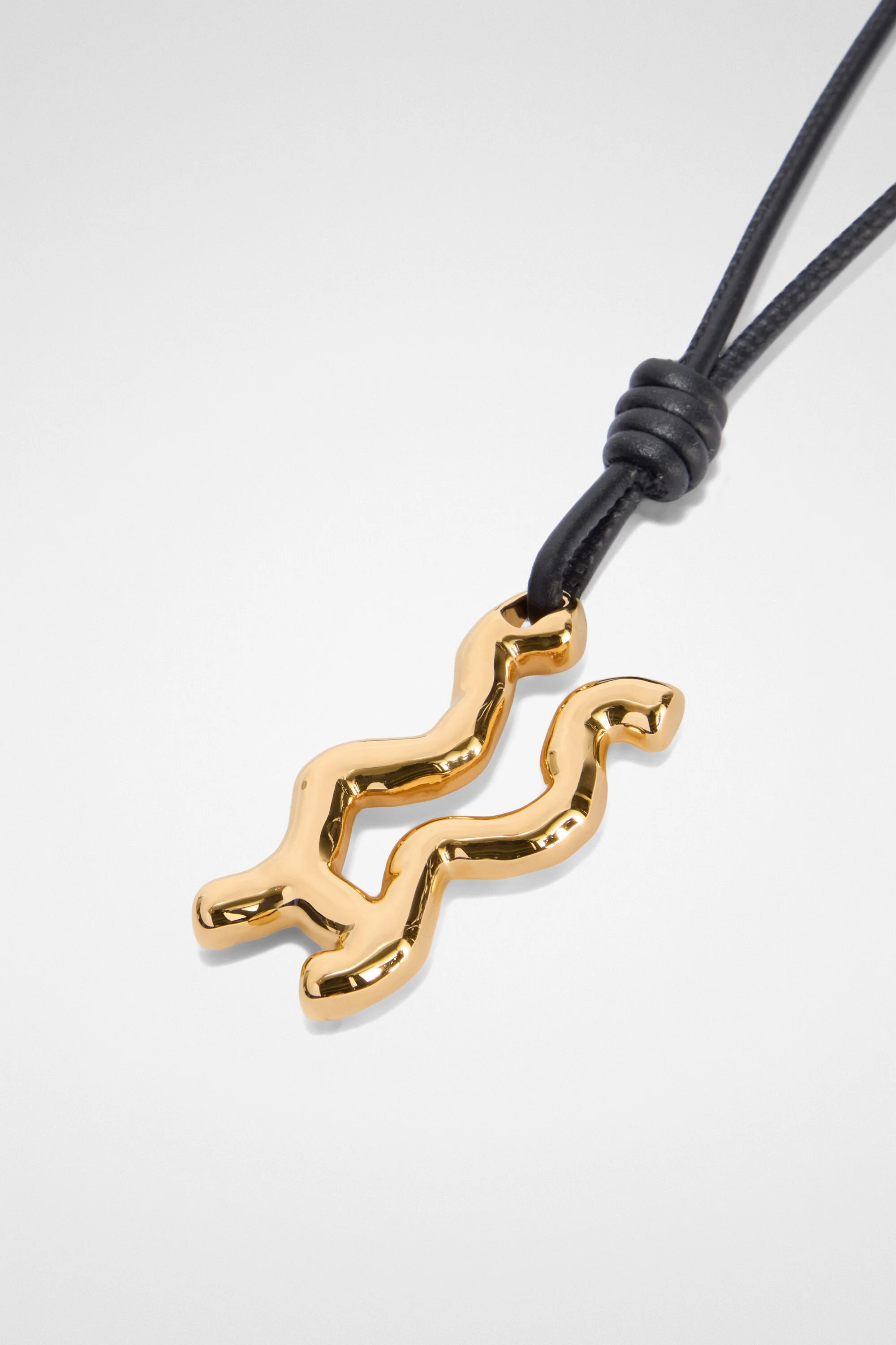 Handcrafted charm with brass zodiac pendant, black leather strap and engraved Jil Sander logo Details - gold-toned pendant - black leather strap with hand-knotted closure - engraved Jil Sander logo - nickel tested - antioxidant treatment - 100% brass - made in Italy - StyleID: J11VL0001P8957771