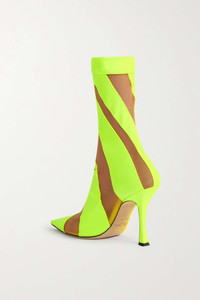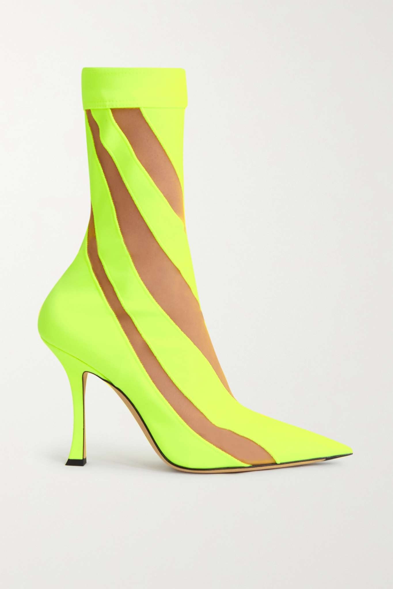 + Mugler 100 two-tone neon jersey and mesh sock boots