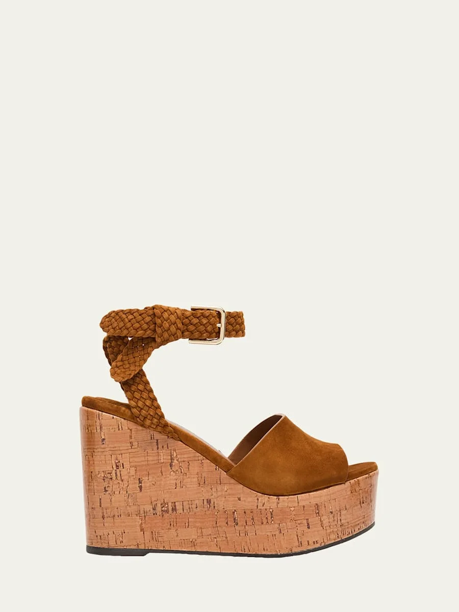 Jimmy Choo's "Jori" platform sandals are crafted from supple suede atop a cork midsole 4.00 in / 100 mm wedge heel Open toe Adjustable braided ankle strap Leather lining Rubber outsole Made in Italy
