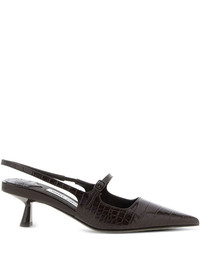 45mm crocodile-embossed slingback pumps Highlights - Brown - Crocodile embossed - Pointed toe - Slingback strap - Adjustable instep strap - Kitten heel Made in Italy Composition Sole: Leather 100% Outer: Metal 100%, Polyester 100%, Leather 87% Lining: Leather 100% SIZE & FIT Measurement HEEL 1.77 in(4.5 cm)