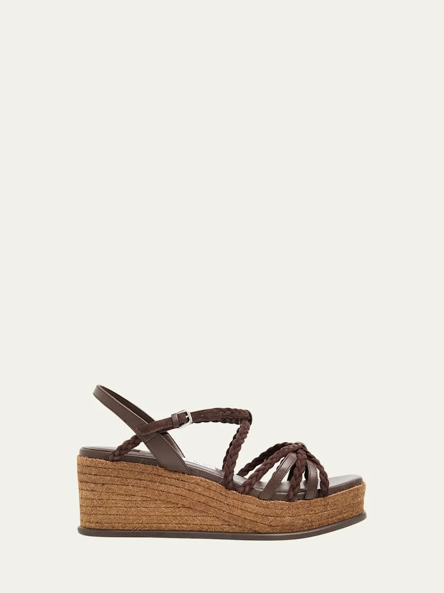 60mm Nyra Leather Espadrille Wedge Sandals