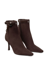 85mm Camie suede ankle boots Highlights - Chocolate brown - Suede - Knotted strap - Stiletto heel - Pointed toe - Side zip fast - Wardrobe iconening Made in Italy Composition Sole: Leather 100% Outer: Suede 100% Lining: Leather 100%