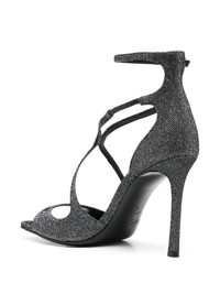 95mm Azia sandals Highlights - Black - Buckle-fastening ankle strap - Leather sole - High stiletto heel - Glitter detailing Made in Italy Composition Outer: Fabric 100% Lining: Calf Leather 100%, Fabric 100% Sole: Rubber 100% SIZE & FIT Measurement HEEL 3.74 in(9.5 cm)