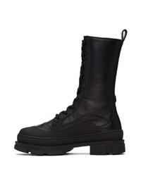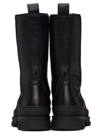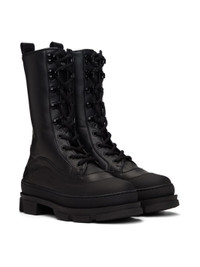 Calf-high grained leather boots in black. · Lace-up closure · Rubberized logo patch at padded tongue · Pull-loop at padded collar · Logo hardware at heel counter · Grained leather lining · Rubberized trim at vamp · Treaded rubber sole Supplier color: Black Upper: leather. Sole: rubber. Made in Italy 232528F113026