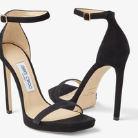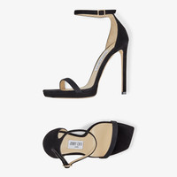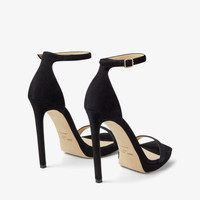 Details, Care & Fit Item No. ALVA120SUE Italian-crafted in black suede, this elegant sandal is an occasion wardrobe must-have. A sharp square toe and a delicate ankle strap complements a sophisticated ensemble. Italian sizing. Fits true to size. - Black suede - Ankle strap with buckle fastening - Square toe - Slim heel - Heel height measures: 120mm/4.7 inches - Made in Italy - By purchasing this product, you are supporting sustainable leather manufacturing through the Leather Working Group